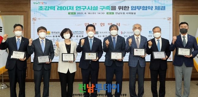 [전남투데이 윤진성 기자]전라남도는 16일 국가대형연구시설로 추진하는 ‘초강력 레이저 연구시설’의 성공적 구축을 위해 2개 대학, 7개 정부출연 연구기관과 다자간 업무협약을 했다.