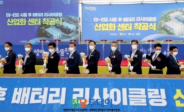[전남투데이 윤진성 기자]전라남도는 18일 나주혁신산단에서 ‘EV·ESS 사용후 배터리 리사이클링 산업화 센터’ 착공식과 함께 ‘배터리 자원순환 체계 구축을 위한 업무협약’을 체결, 배터리 재사용 산업의 중심지로 도약하기 위해 박차를 가했다.