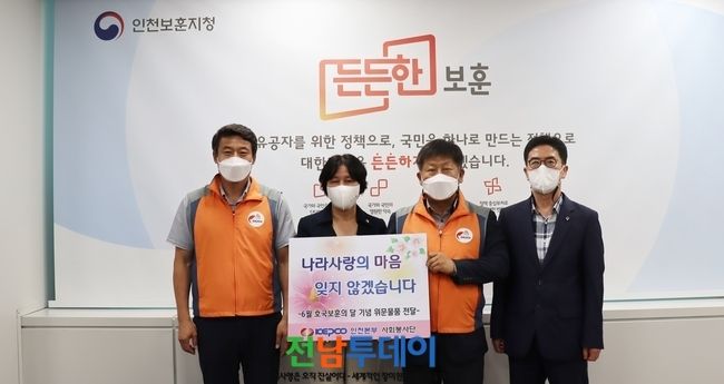 [전남투데이 윤진성 기자]국가보훈처 인천보훈지청(지청장 박현숙)은 호국보훈의 달을 맞아 6월 18일(금)한국전력공사 인천본부(본부장 김필선)로부터 독거 및 고령 국가유공자를 위한 기부금 200만원을 전달받았다.