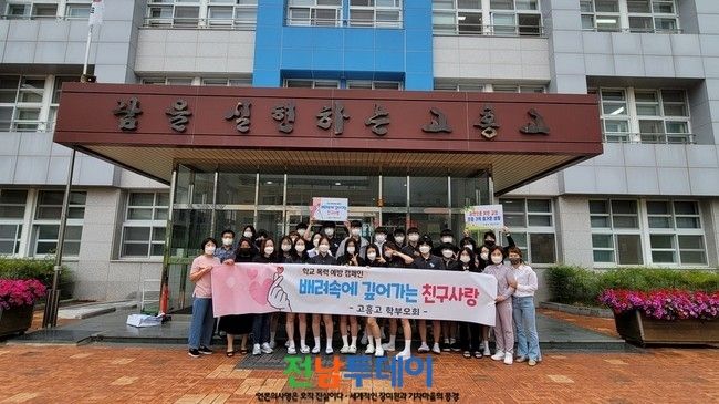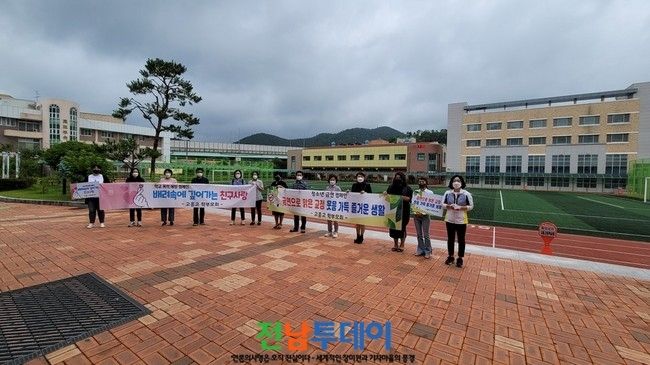 [전남투데이 윤진성 기자]고흥고등학교(교장 정종익) 학부모위원회에서는 6월 15일(화) 학생들의 등교시간에 맞춰 ‘학교폭력 예방 및 금연 캠페인’을 전개했다. 간간히 빗방울 긋는 궂은 날씨에 학교 본관 앞에서 코로나19 방역수칙을 준수하며 진행된 캠페인은 학생들이 건강하고 안전하며 즐거운 학교생활을 할 수 있도록 하는 차원에서 추진됐다.