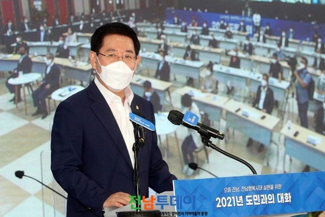 이날 도민과의 대화에는 김영록 도지사와 유근기 곡성군수, 정인균 군의회 의장, 이상철·정옥님 도의원 등 200여 명이 참여했다.