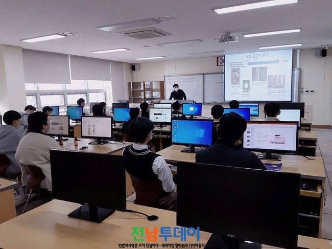 [전남투데이 윤진성 기자]전라남도고흥교육지원청(교육장 김정희) 발명교육센터는 4월부터 6월, 총 5회에 걸쳐 고흥고등학교(교장 정종익) 발명 동아리 학생 20명을 대상으로 3D 모델링과 연계한 일반계 고등학생 지식재산 소양 교육을 시행하였다.