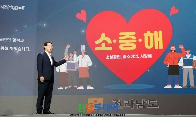 김 지사는 “전남 100년을 이끌 미래비전으로 ‘청정 전남 블루 이코노미’와 ‘전남형 뉴딜’을 추진한 결과 국고예산이 2년 연속 7조 원을 돌파했고, 올해 사상 처음 예산 10조 원 시대를 열었다”고 말했다.
