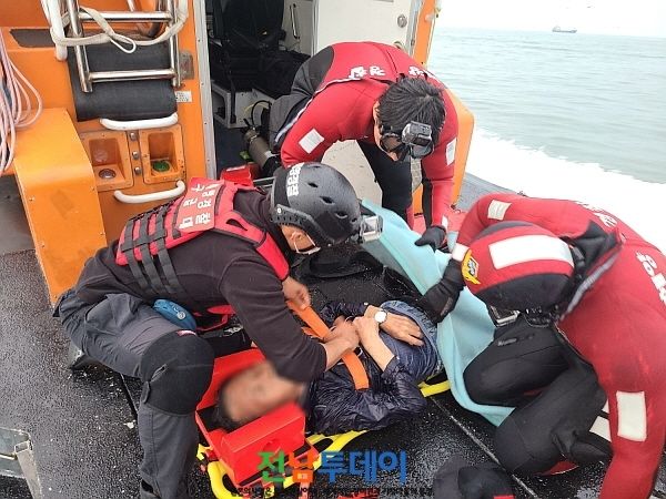 현장에 출동 한 구조대는 해상에서 요구조자 A씨(남, 60대)를 발견하고 경장 박기홍 등 3명의 경찰관이 해상 입수 30m를 수영하여 표류자를 구조했다.