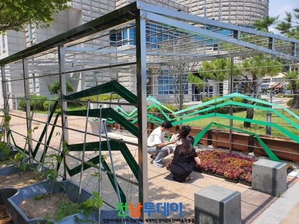 [전남투데이 윤진성 기자]소설 태백산맥과 벌교꼬막으로 유명한 보성군이 벌교읍행정복지센터에 태백산맥을 형상화한 넝쿨식물 터널을 조성해 주민들의 좋은 호응을 얻고 있다.