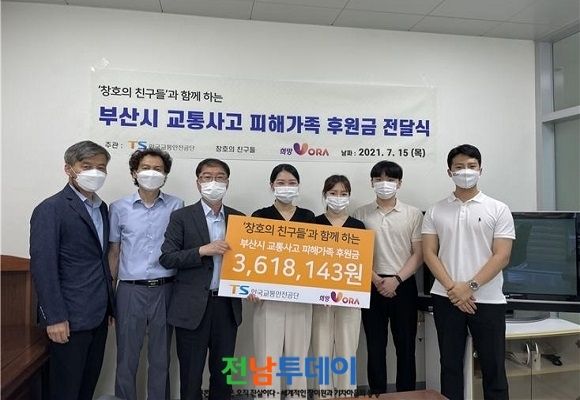[전남투데이 윤진성 기자]한국교통안전공단 부산본부(본부장 양경채)와 故 윤창호의 친구들은 “부산시 자동차사고 피해가족 기부금 전달식”을 지난 15일 개최하였다고 밝혔다.