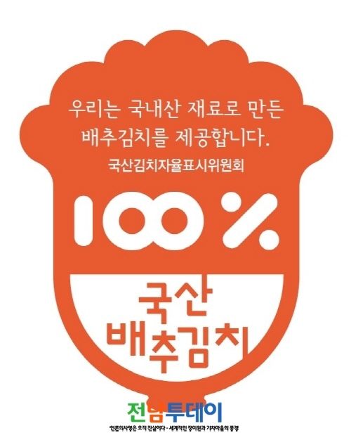 강하춘 전남도 농식품유통과장은 “전남을 찾는 관광객과 소비자가 어디서든 국산김치를 마음 편히 먹도록 소비문화를 정착하겠다”며 “음식점도 국산김치 사용 인증을 받아 해당 업소임을 표시할 것”을 당부했다.