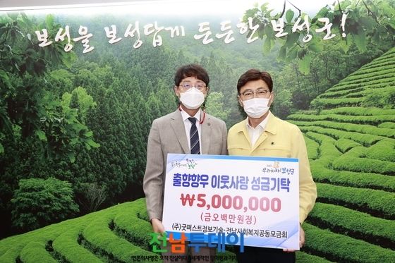 [전남투데이 윤진성 기자]㈜굿퍼스트정보기술 대표이사 장철호는 27일 보성군을 방문해 어려운 이웃들을 위해 써달라며 5백만 원을 기탁했다.