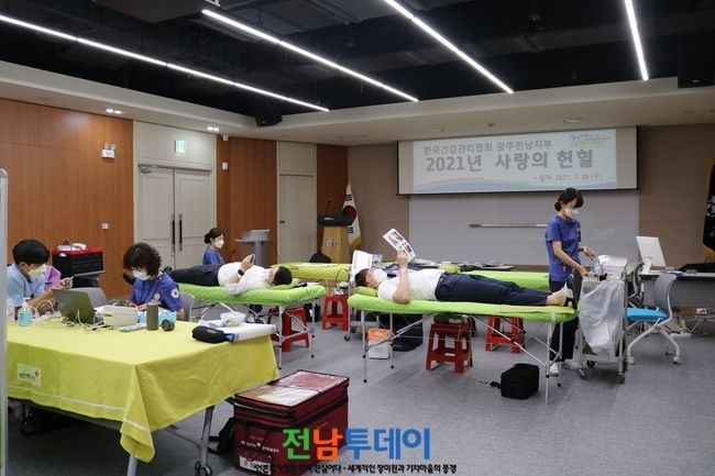 [전남투데이 윤진성 기자]한국건강관리협회 광주전남지부(본부장 김계환)은 코로나19 사태로 인한 혈액 수급난해소를 위해 단체 헌혈을 28일 실시했다.