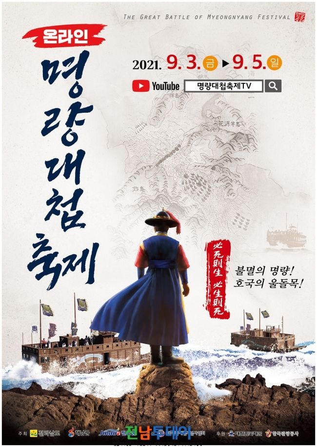 [전남투데이 윤진성 기자]전라남도는 오는 9월 3일부터 3일간 ‘불멸의 명량! 호국의 울돌목!’이란 주제로 2021 명량대첩축제를 비대면 온라인 방식으로 개최한다고 밝혔다.
