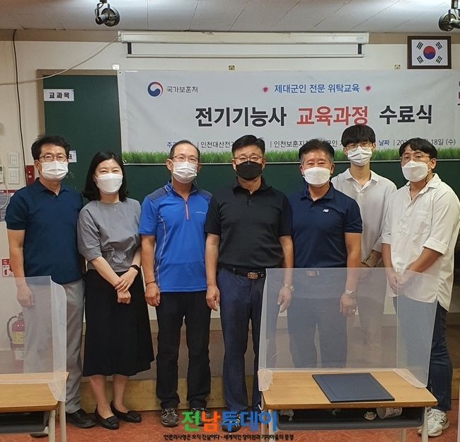 [전남투데이 윤진성 기자]국가보훈처 인천보훈지청(지청장 박현숙) 제대군인지원센터는 2021. 8. 18(수)에 인천시 부평구에 위치한 인천대산전기직업학교에서 전문교육기관 위탁교육과정으로 진행된 “전기기능사 취득과정” 수료식을 가지고 제대(예정)군인의 안정적인 사회정착과 성공적인 취업을 기원하였다.