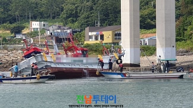 낚시어선 A호는 팔영대교 인근 해상에서 낚시 활동 중 저수심에 좌초된 것으로 추정되며, 인명피해 및 침수는 없고 좌현으로 약 15도가량 기울어져 있는 상태다.