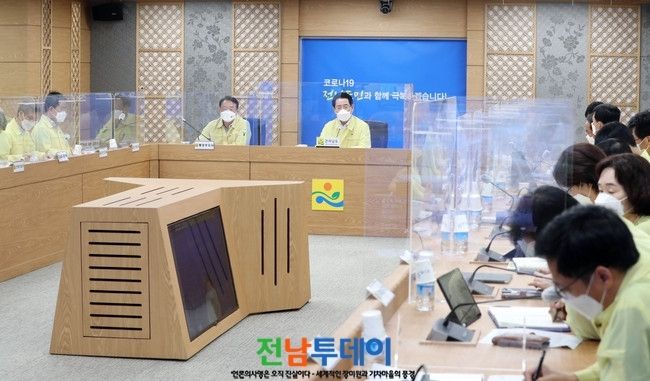 [전남투데이 윤진성 기자]김영록 전라남도지사는 23일 도청 정철실에서 태풍 ‘오마이스(OMAIS)’ 대책회의를 열어 “실국별로 태풍 대처계획이 현장에서 제대로 이행되도록 꼼꼼히 챙기고, 도민 피해가 없도록 철저히 대비할 것”을 당부했다.