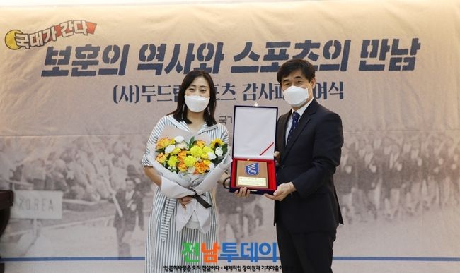 [전남투데이 윤진성 기자]서울지방보훈청(청장 이성춘)은 보훈의 역사 스포츠와 만남 ‘국대가 간다‘를 통한 보훈문화 확산에 노력한 (사)두드림스포츠에 국가보훈처장 감사패를 전달했다고 밝혔다.