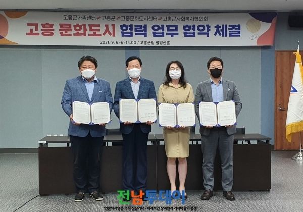 고흥군은 6일 정하용 부군수, 고흥군가족센터, 고흥군사회복지협의회, 고흥 문화도시센터 등 10여명 이 참석한 가운데 문화생태계 구축, 문화다양성 확산을 위한 업무 협약을 체결했다.