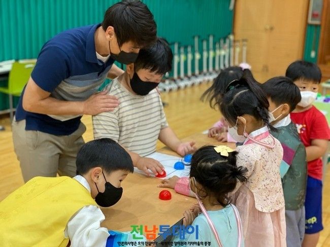 [전남투데이 윤진성 기자]9월 16일, 고흥 남양초등학교(교장 김경호) 전교생과 유치원생이 함께 추석 맞이 전통 놀이 체험 활동을 실시하였다.