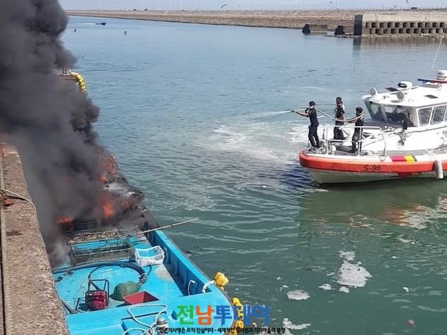 [전남투데이 윤진성 기자]군산해양경찰서는 24일 오후 12시 20분께 군산 새만금 신치항에 정박중이던 선박A호(2.99톤, 어획물 운반선, 승선원 1명)에서 화재가 발생했으나 신속한 초기대응으로 인명피해 없이 조기진화했다고 밝혔다.