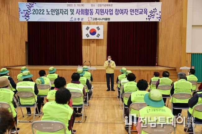 고흥군은 3월 10일 금산면(133명), 두원면(107명)지역 노인일자리 참여자 어르신 240명을 대상으로 김일기념체육관, 두원농협회의실에서 각각 일자리 안전교육을 실시했다.