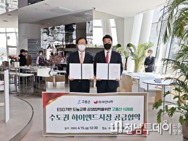 전남투데이 강선길 기자 | 고흥군은 지난 15일 서울 서초구 ‘세빛섬 무드서울’에서 ㈜와인나라와 ‘고흥산 식재료 수도권 하이엔드 시장 공급 협약’을 체결하였다.