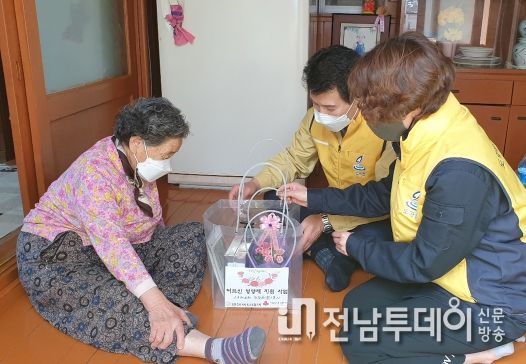 도양읍 주민들의 후원금으로 조성된 전남사회복지공동모금회 ‘좀도리 모으기’ 기탁금을 배분받아 진행된 이번 사업은 지역사회보장협의체 위원들이 도양읍 관내 어르신 중 자녀가 없거나, 자녀가 있어도 자주 찾아뵙지 못하는 37가구와 저소득아동 22가구를 직접 방문해 감사와 사랑의 마음을 담아 영양제와 카네이션 화분, 파스, 제습제, 모기 기피제, 손소독제 등 생필품 꾸러미(3백4만원 상당)를 전달하며 따뜻하고 행복한 시간을 가졌다.