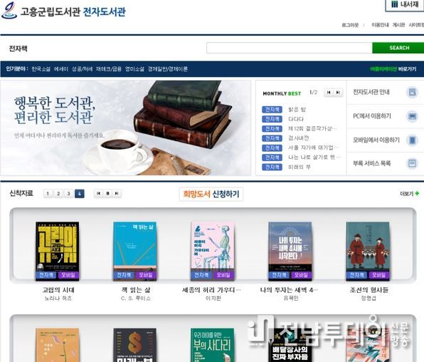 전남투데이 강선길 기자 | 고흥군은 비대면 랜선 독서생활 지원을 위해 오는 16일부터 고흥군립도서관 내 전자도서관에서 전자책(e-Book) 희망도서 신청을 받는다고 밝혔다.