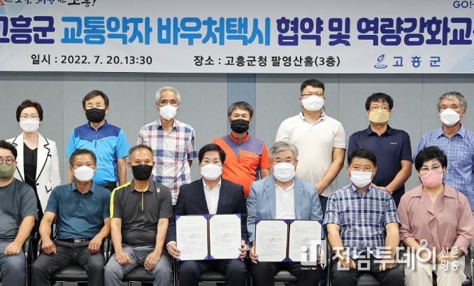 전남투데이 강선길 기자 | 고흥군은 관내 교통약자 이동편의 증진 및 복지향상을 위해 지난 20일 군청 팔영산홀에서 바우처택시 참여자와 협약을 맺고 다음달 1일부터‘교통약자 바우처택시’14대를 도입해 운행한다고 밝혔다.