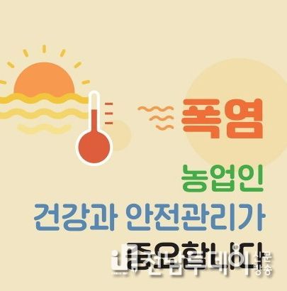 군 관계자는 “여름철 농작업 시 안전하고 건강한 농업 활동을 지속하기 위해서는 폭염 대비 안전 수칙을 생활화하는 것이 무엇보다 중요하다”며, “폭염에 취약한 농업인의 피해를 최소화하기 위한 사업 발굴과 지원을 확대하고 농업인 온열질환 예방을 위해 현장지도를 지속해서 추진하겠다”고 밝혔다.