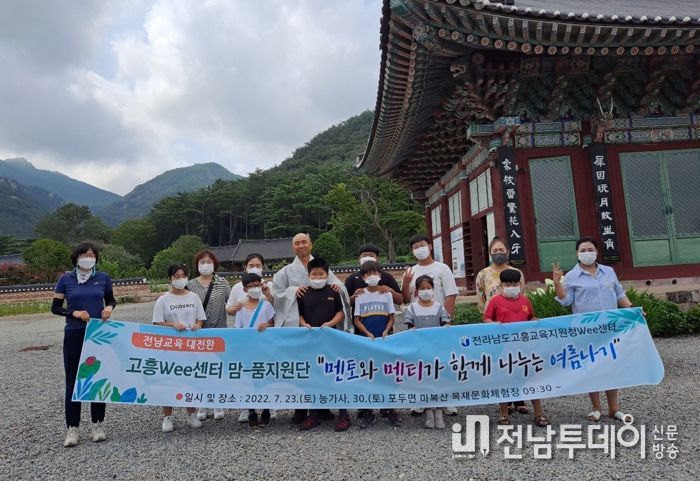 전남투데이 강선길 기자 | 전라남도고흥교육지원청 Wee센터는 7월 23일 점암면 능가사, 7월 30일 목재문화체험장에서 정서적 지원이 필요한 학생들의 건강한 여름생활을 위해 Wee센터 전문인력, 맘-품지원단 멘토와 함께 “멘토와 멘티가 함께 나누는 여름나기 체험”을 실시하였다.