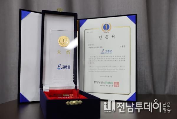 전남투데이 강선길 기자 | 고흥군은 지난 4일 중앙일보·포브스코리아가 주최한 2022 고객신뢰도 1위 프리미엄 브랜드 대상‘귀농귀촌 선도도시 부문’에 지난해에 이어 2년 연속 수상하는 영예를 안았다고 밝혔다.