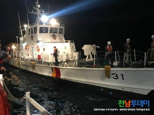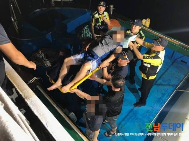 또한, 민간해양구조선 삼도호(9.77톤, 연안복합) 선장 공효신(50세, 남) 씨에게 구조요청을 하여 환자ㆍ보호자 각 1명을 민간해양구조선과 500톤ㆍ100톤급 경비함정이 신속하게 릴레이 이송하여 오늘 오전 12시 7분께 고흥군 봉래면 축정항에 대기 중인 119구급대원에게 응급환자를 인계 여수 소재 병원으로 이송조치 하였다.