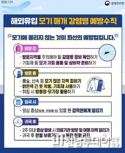전남투데이 김윤걸 기자 | 전라남도 나주시는 19일 여름 휴가철 해외여행 및 야외활동 증가에 따라 모기 매개 감염병 예방을 위해 시민들의 각별한 주의를 당부했다.