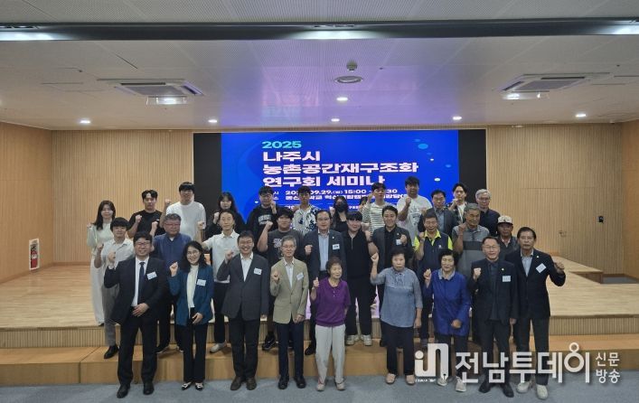 전남투데이 김윤걸 기자 | 나주시의회 의원연구단체 ‘농촌공간 재구조화 과정 연구회’(대표의원 김강정)가 주최한 세미나가 지난 29일 빛가람동 동신대한방병원에서 읍면동 주민들과 유관기관 단체장, 언론인을 비롯한 관계자 등이 참석한 가운데 개최됐다.