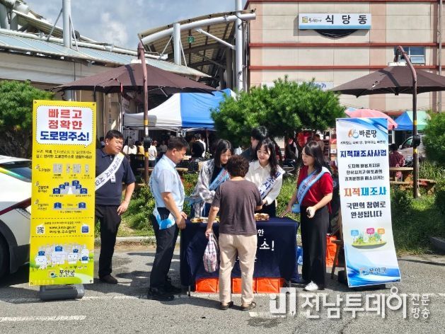 전남투데이 김길룡 기자 | 전남 무안군은 2025년 추석 명절을 맞이하여 29일 오전 무안전통시장을 찾아 지역 주민들과 시장 방문객들을 대상으로 지적재조사사업 및 도로명주소 합동 홍보를 실시했다.