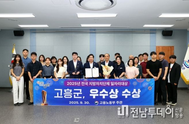 전남투데이 조평훈 기자 | 고흥군은 고용노동부가 주관한 ‘2025년 전국 지방자치단체 일자리대상’에서 “우수상”을 수상하는 영예를 안았다고 2일 밝혔다.
