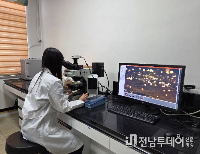 현미경 검경을 통해 패각사상체(김 씨앗이 부착된 굴 껍데기) 성숙도, 김 씨앗의 김 양식 그물 부착 여부 확인 등 김 양성 상태를 종합적으로 진단받을 수 있다.