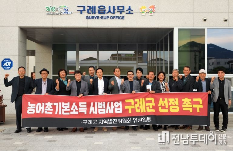 전남투데이 강길수 기자 | 전남 구례군지역발전위원회(위원장 장석우)는 지난 1일 구례읍사무소에서 정부가 추진하는 농어촌기본소득 시범사업 대상지로 구례군을 선정할 것을 강력히 촉구했다.