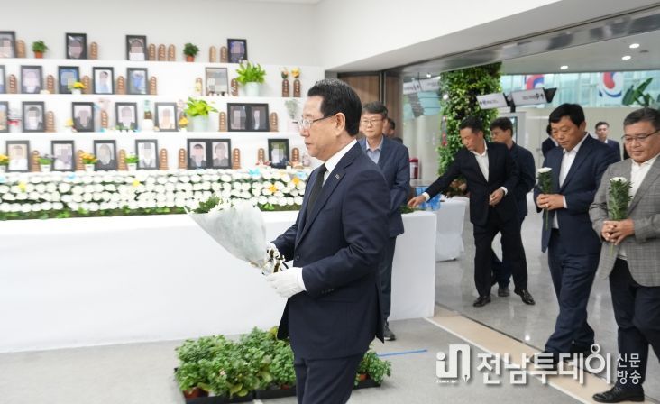 전남투데이 손영욱 기자 | 김영록 전라남도지사는 추석을 앞둔 3일 제주항공 여객기 사고 희생자 무안공항 합동분향소를 찾아 헌화·분향하며 희생된 분들의 넋을 기렸다.