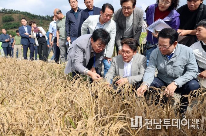 전남투데이 김용희 기자 | 장흥군은 김민석 국무총리가 7일 장흥군 안양면 해창리 일원을 방문해 ‘벼 깨씨무늬병’ 피해 현장을 점검했다고 전했다.