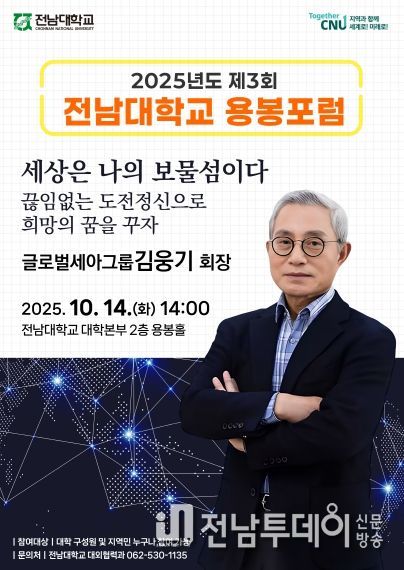 9일 전남대학교(총장 이근배)에 따르면, 오는 10월 14일 오후 2시, 국제회의동 2층 용봉홀에서 ‘2025 제3회 전남대학교 용봉포럼’을 개최한다.