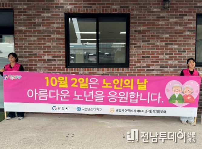 전남투데이 조평훈 기자 | 광양시 어린이·사회복지급식관리지원센터는 지난 10월 2일 노인의 날을 맞아 광양시 가가호호주야간보호센터 앞에서 시민과 어르신을 대상으로 캠페인을 전개했다.