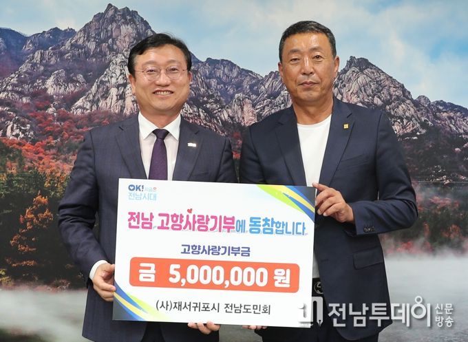 전남투데이 손영욱 기자 | 전라남도는 (사)재서귀포시 전남도민회가 지난 10일 고향사랑기부금 500만 원을 전남도에 기탁했다고 밝혔다.