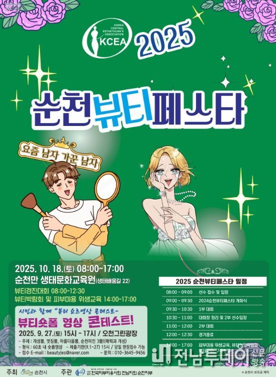 전남투데이 조평훈 기자 | 순천시는 오는 18일 순천만생태문화교육원에서 ‘2025년 순천 뷰티페스타’를 개최한다고 밝혔다.