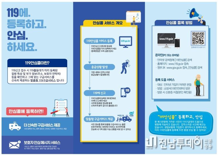 서비스 등록은 119안심콜 누리집 또는 가까운 소방서를 통해 가능하며, 등록 이후에는 언제 어디서나 119 신고 때 자동으로 정보가 연계돼 최적의 응급처치를 받을 수 있다.