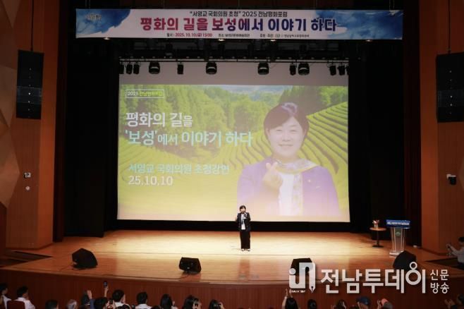 전남투데이 조평훈 기자 | 보성군은 지난 10일 보성군문화예술회관에서 개최된 ‘서영교 국회의원 초청 2025 전남평화포럼’이 군민 700여 명이 참석한 가운데 성황리에 마무리됐다고 밝혔다.