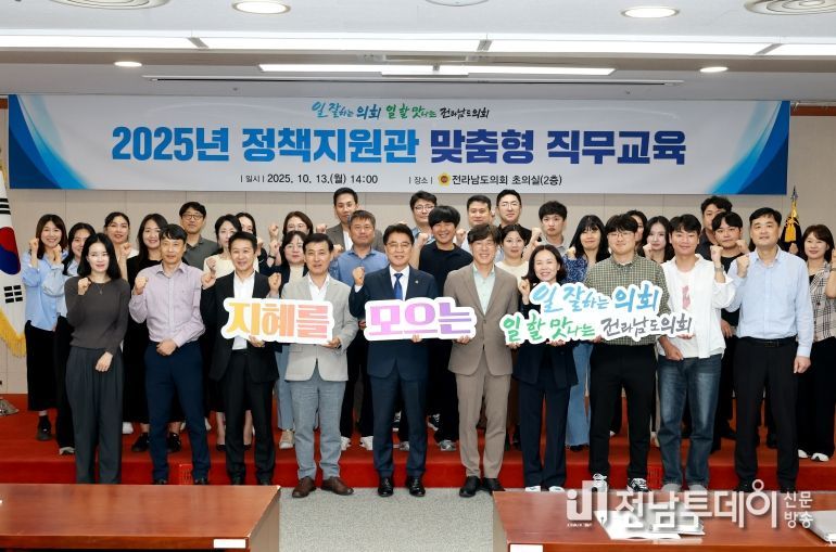 전남투데이 손영욱 기자 | 전라남도의회는 10월 13일, 도의회 초의실에서 소속 정책지원관과 직원을 대상으로 ‘맞춤형 직무교육’을 실시했다.