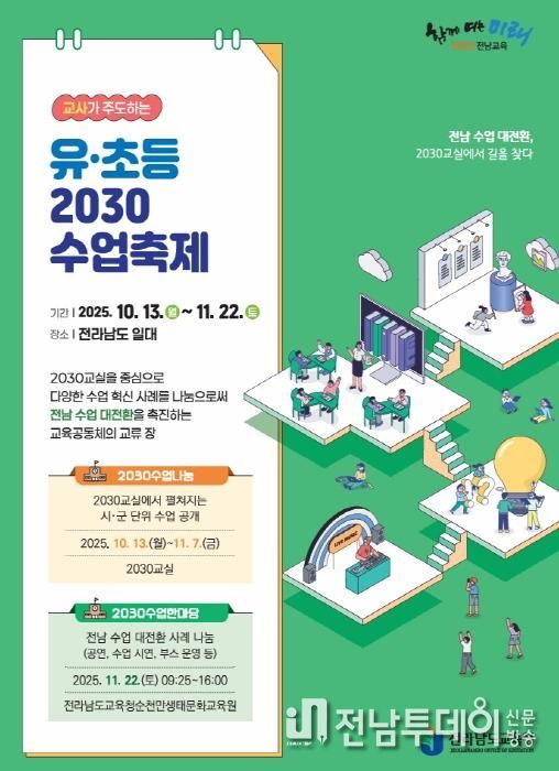 전남투데이 손영욱 기자 | 전라남도교육청은 지난 13일부터 11월 29일까지 전남 일원에서 ‘유·초·중등 2030수업축제’를 개최한다.