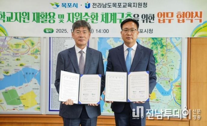 전남투데이 손영욱 기자 | 목포시는 지난 13일, 시청에서 전라남도목포교육지원청과 학교자원 재활용 및 자원순환 체계 구축을 위한 업무협약을 체결했다.