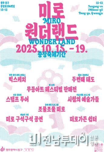 전남투데이 정홍균 기자 | 광주 동구는 오는 15일부터 19일까지 열리는 ‘제22회 광주 추억의 충장축제’ 개최 기간 동안 미로센터와 예술의 거리에서 시민 참여형 예술축제 ‘미로 원더랜드’를 개최한다고 밝혔다.