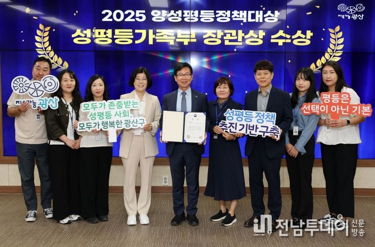 전남투데이 정홍균 기자 | 광주 광산구는 여성신문과 전국여성지방의원네트워크가 공동 주최하고 (사)지방자치발전소가 주관하는 ‘2025 양성평등정책대상’에서 성평등가족부 장관상을 받았다고 13일 밝혔다.