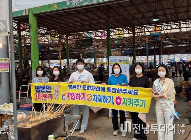 특히 추석 연휴를 앞둔 10월 1일 광양읍 5일시장 일원에서 ‘병문안 문화개선 캠페인’을 전개하고, 병문안 문화개선 3대 원칙인 ▲확인하기(병문안 가능시간·장소 확인) ▲자제하기(환자를 위해 병실 면회 자제) ▲지켜주기(손 위생, 기침 예절 등 예방수칙 지키기)의 생활 속 실천을 시민들에게 당부했다.